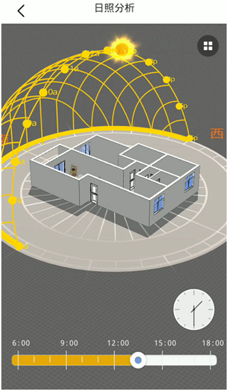 在设置完户型朝向(朝向设置)后,即可在我的户型界面,点击日照分析,查看日照效果